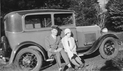 Thelma and Clark; Ozro in his NU Band uniform and Thelma with her new 1929 Ford Model A.