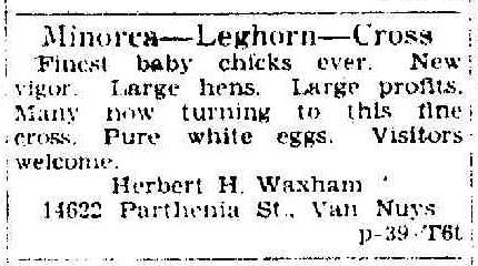 - 1933 Advertisement in the Van Nuys (California)